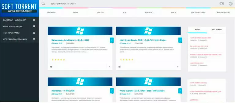 Торрент пользуется популярностью среди любителей различных сборок операционки Windows. Любые материалы, касающиеся улучшения своего софта, вы всегда найдете именно на этом ресурсе. Также представлена большая коллекция полезных файлов для Linux и ПО для мобильных гаджетов.