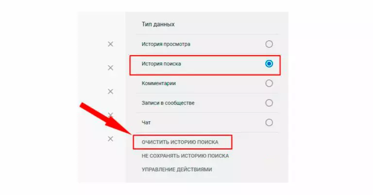 - задать очистку истории поиска и подтвердить свое решение. В этом случае удалится полностью вся история видео из вашего аккаунта.