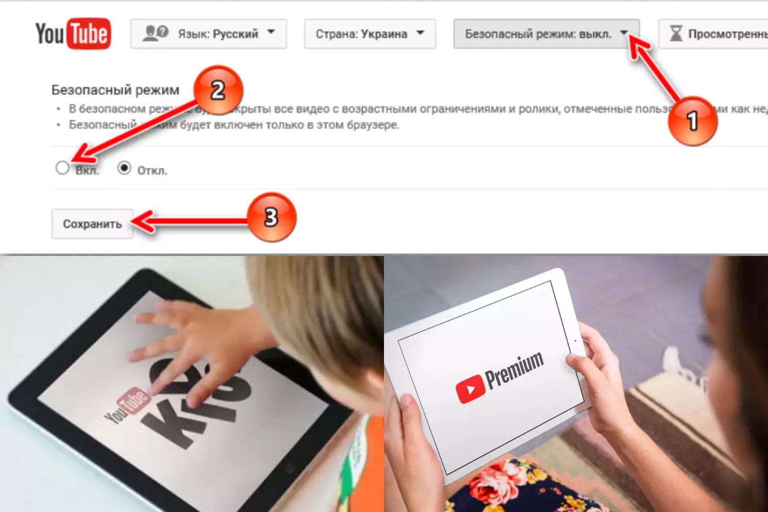 Контрольные настройки для безопасного просмотра YouTube Детям