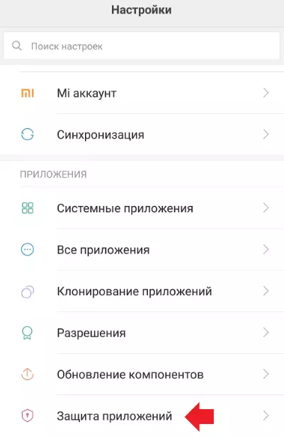На смартфонах Xiaomi, функционирующих на базе ОС Андроид, принцип скрытия приложений немного отличается. Производится операция также через настройки, раздел «Приложения». Далее необходимо перейти в папку «Защита приложений» (расположена внизу страницы).